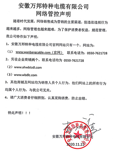 鄭重聲明:安徽萬邦特種電纜有限公司官方網站為:www_wanbangcable_com.lfxs99.com,除此之外無任何子網站或合作網站,其余均為假冒偽劣。電話:0550-7621728 13485756353 地 址:安徽省天長市滁州高新技術產業開發區經四路29號